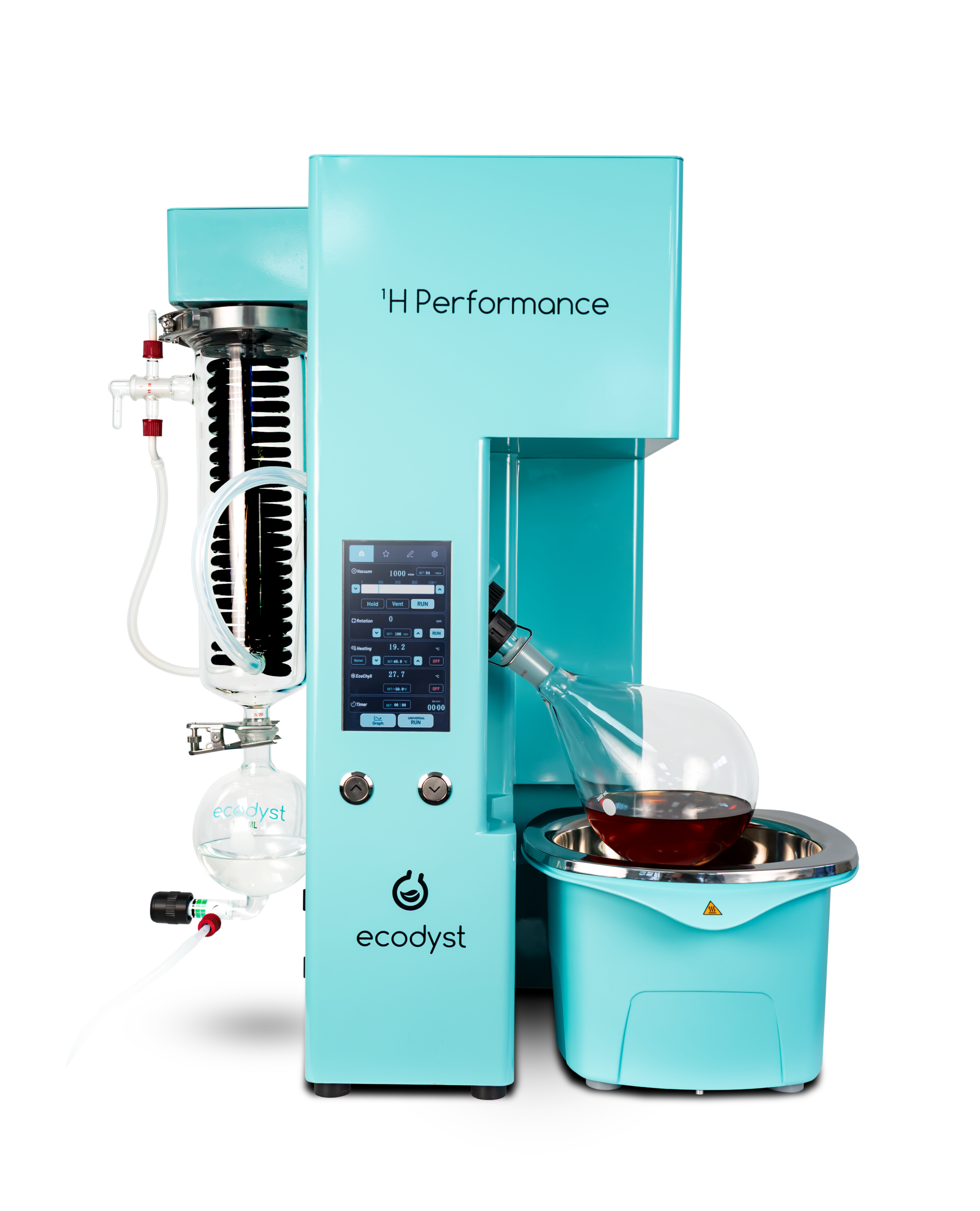 Dramatically improve run times, reduce operating costs, and never have to change chiller fluids or find dry ice again! Ecodyst’s 1H rotovaps are high performance, self-cooling rotary evaporators with a compact footprint. These eco-friendly, energy-efficient, sustainable rotovaps use a built-in condenser which eliminates the need for glycol, water, or dry ice while massively reducing coolant pull-down times.